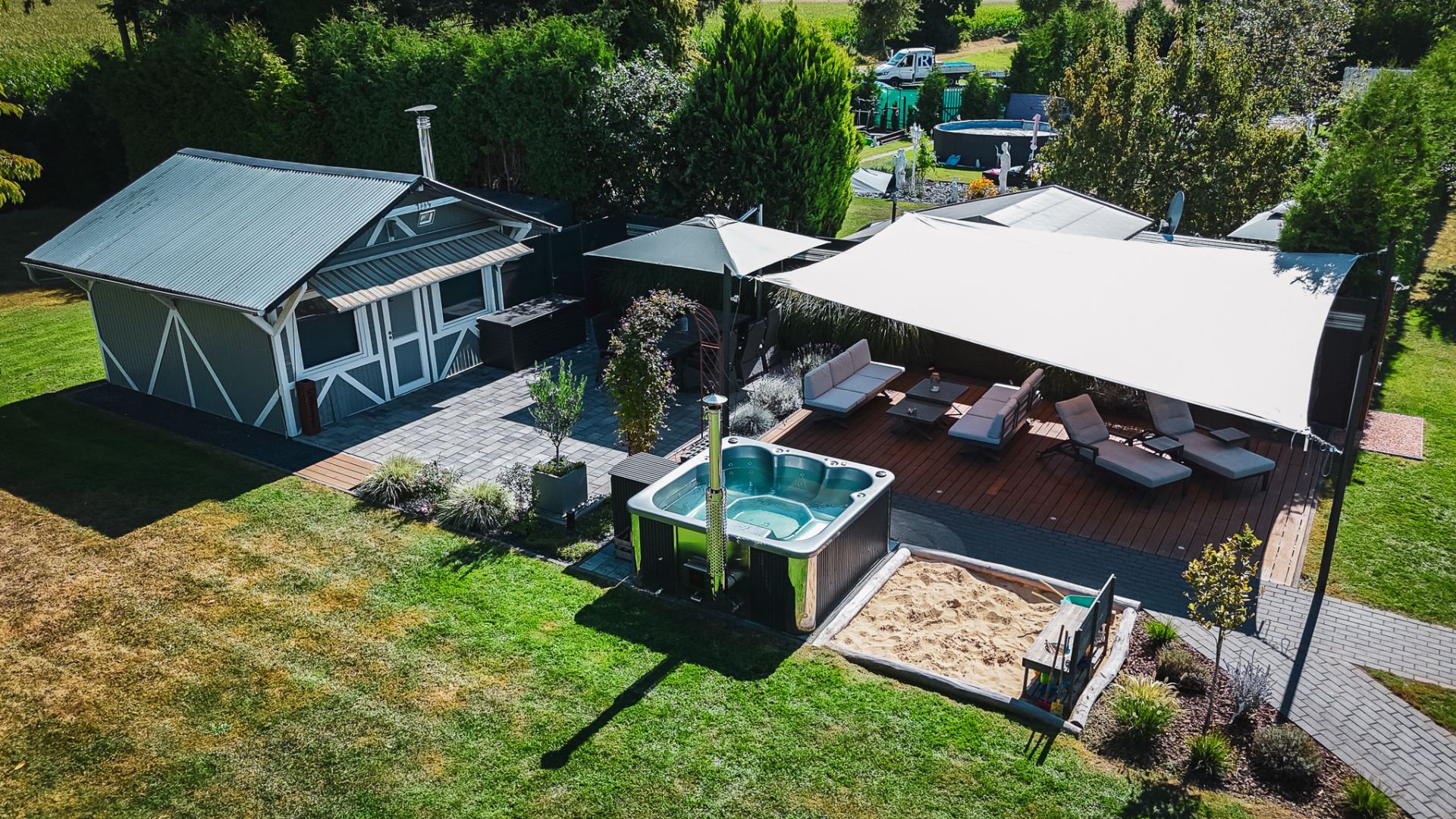 Zusätzlich haben wir noch eine moderne Solar-Außendusche installiert. Diese stilvolle Outdoor-Dusche verfügt über ein hochwertiges Edelstahlprofil und nutzt reine Sonnenkraft: Nach nur 10 Minuten Aufwärmzeit steht warmes Wasser zur Verfügung. Der Aufbau ist auf Langlebigkeit ausgelegt: Ein 0,32 m hoher, verdichteter Mineralunterbau sorgt für maximale Stabilität, während die Deckschicht aus Rundkornkies im Farbton „Cappuccino“ für eine edle Optik und optimale Entwässerung sorgt.