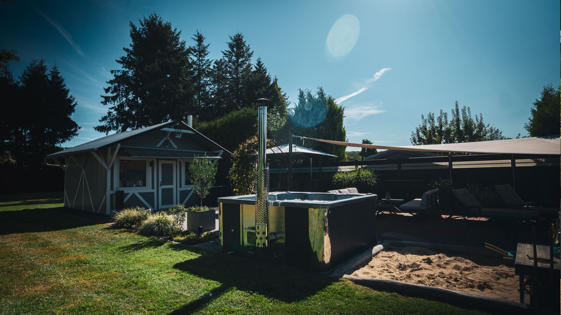 Bei diesem Privatprojekt haben wir in Zusammenarbeit mit einem Partner einen individuell gestaltbaren Whirlpool aufgestellt und installiert. Das Angebot umfasst eine große Vielfalt an Modellen – von klein bis groß, rund oder eckig –, die ganz nach Ihren Wünschen frei gestaltet werden können, bis hin zur exakten Positionierung der Massagedüsen. Ein Highlight des Sortiments ist ein großzügiger Whirlpool für 6 bis 8 Personen mit einem Fassungsvermögen von ca. 3.500 Litern. Dieser verfügt sowohl über eine klassische Whirlpool- als auch eine gezielte Massagefunktion. Für das passende Ambiente sorgen eine integrierte Beleuchtung sowie hochwertige Musikboxen, die an den Ecken elegant nach oben ausfahren. Die technische Umsetzung erfolgt auf höchstem Niveau: Der Pool steht auf einer stabilen Pflasterung, die mit Tiefborden fachgerecht eingerahmt ist. Die Technik wird separat untergebracht, während ein rückseitig montierter Holzofen das Wasser auf wohlige Temperaturen zwischen 36 und 40 Grad bringt. Ein integriertes Thermometer ermöglicht dabei die jederzeitige Kontrolle der Wärme.